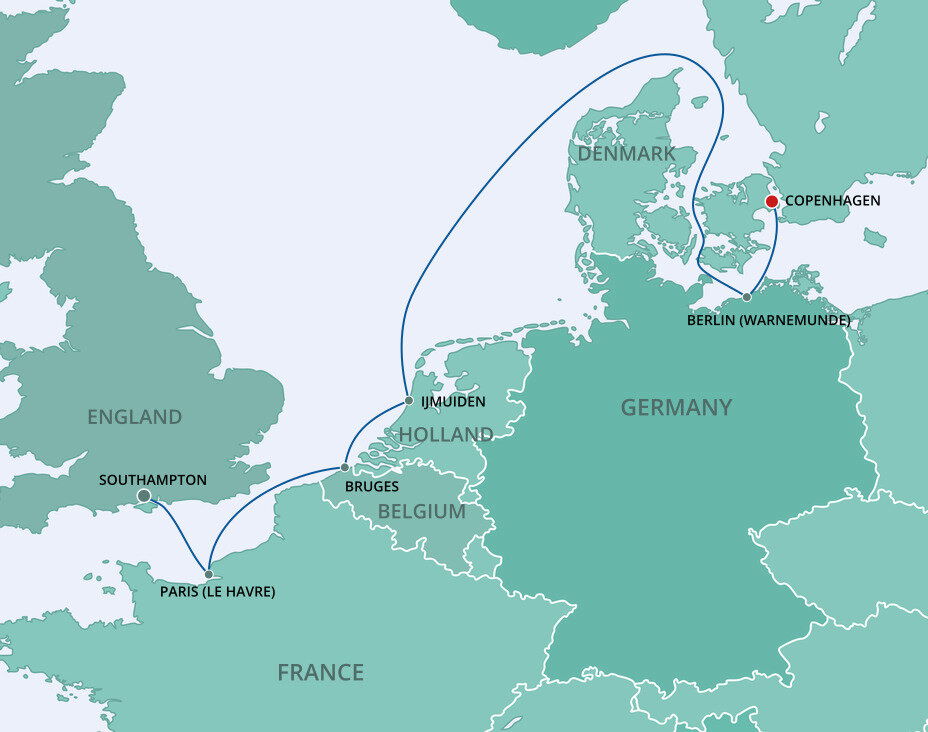 The iconic Little Mermaid statue sits serenely by the waterfront, while Tivoli Gardens, one of the world’s oldest amusement parks, offers charming rides and lush gardens in the heart of the city. Your ship will dock at the Port of Copenhagen, which is a 30 minute drive to Copenhagen Airport and a 15 minute drive into the city centre.