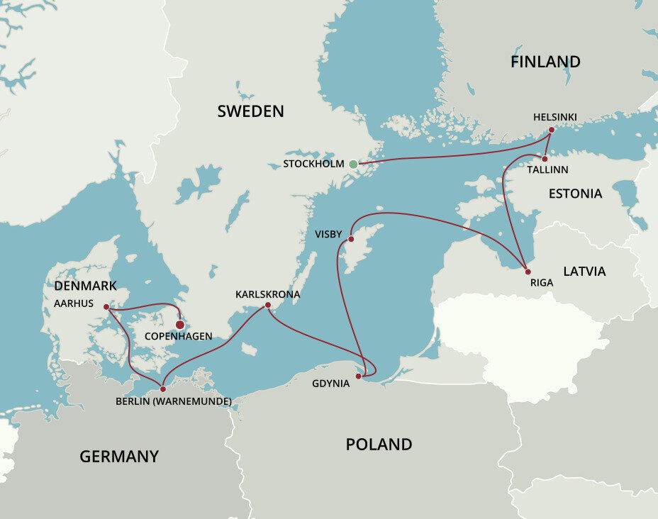Karlskrona is an enchanting city with its storybook cottages, immense town square, and hundreds of small islands awaiting discovery amid the sparkling sea. It is known as Sweden's only baroque city and is host to Sweden's sole remaining naval base. Small ships will dock at the Port of Karlskrona, while large ships will anchor offshore.