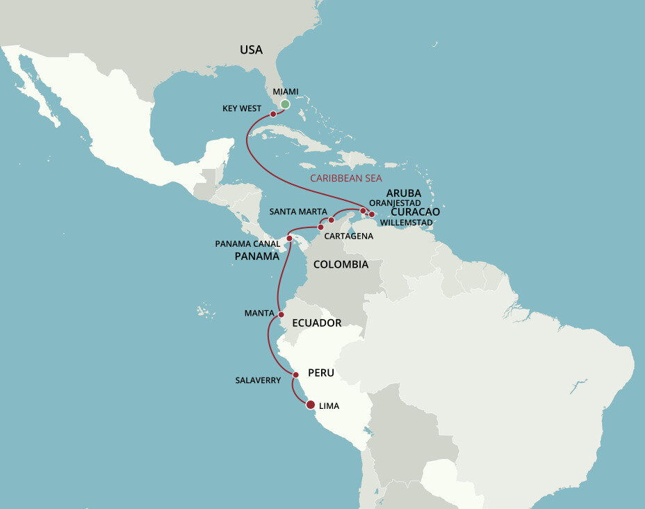 Salaverry is the gateway to Trujillo, an elegant colonial town with brightly coloured façades, decorated with ornate wooden balconies. The city has a splendid backdrop of the Andean foothills and is set in a land scattered with impressive ruins and archaeological treasures left by ancient civilisations. Ships will dock at this port.