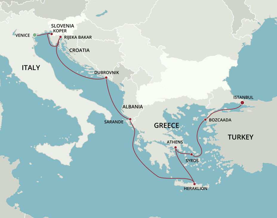 The tiny island of Bozcaada floats peacefully off the western coast of Turkey in the Dardanelles Strait. This charming port boasts untouched bays with a rich marine life, delightful local culture, significant historical heritage, and world-class wine. Ships will anchor offshore and tenders will be provided to the shore.