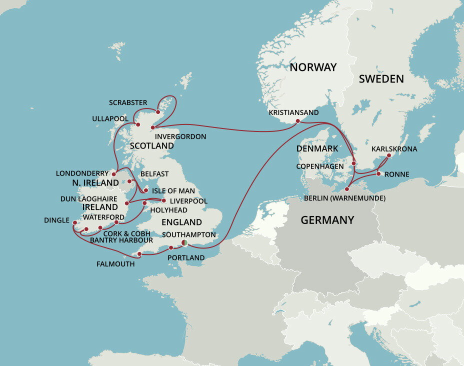 Northern Ireland's capital, Belfast, enjoys a wonderful setting of high hills, sea lough and river valley. Reborn as a cool, modern city, it has successfully left its troubles behind, emerging as a hotbed of culture and architecture, where the comfort of a cosy pub is never far away. Ships will dock in Belfast Harbour.