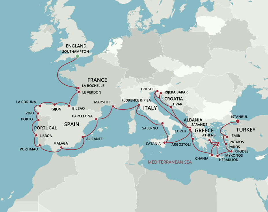 Once the seat of two massive empires, Istanbul has been shaped by its colourful history. From massive Byzantine churches, to towering Ottoman mosques, history can be found in each building no matter what part of the city you wander through. Ships will dock at the Galataport cruise ship terminal which is a 40 minute drive from the Istanbul Airport.