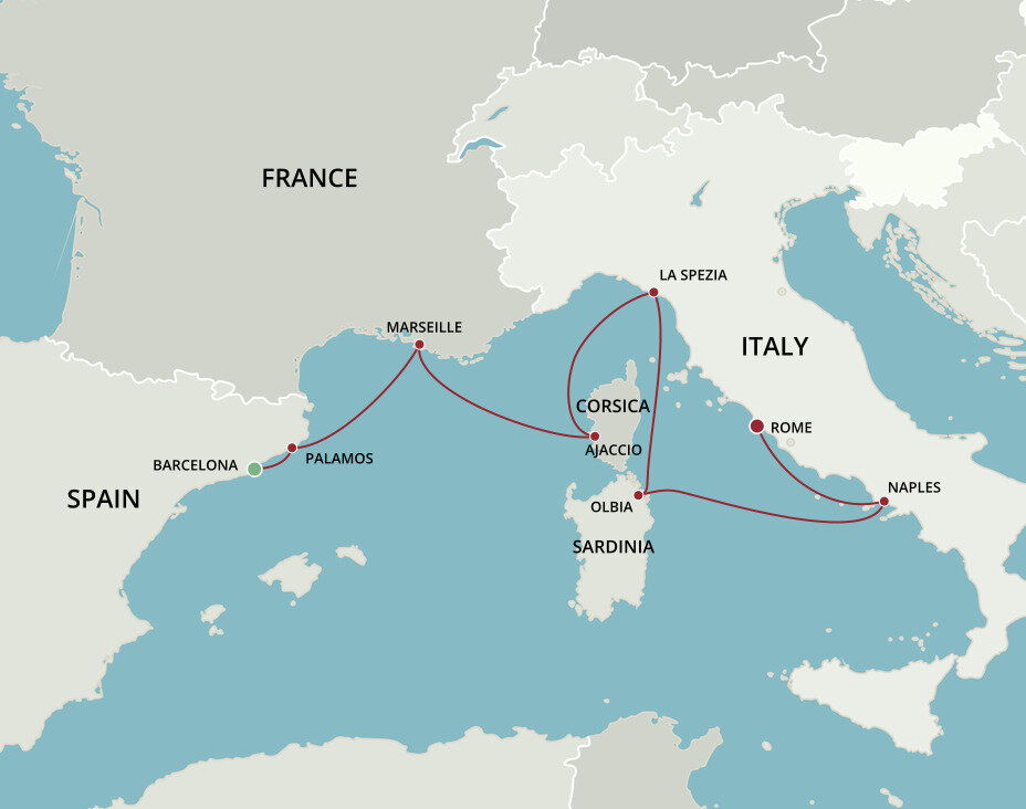 Located on the west coast of Corsica, Ajaccio is surrounded by green-hued mountains, with shady palm fringed squares and pleasure boats bobbing in the bay. The city is best known as the birthplace of Napoleon Bonaparte and his legacy dominates the city in its statues and street names. Ships will dock at Gare Maritime d’Ajaccio.