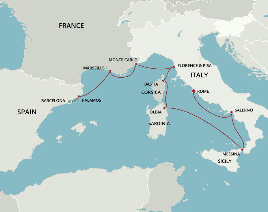 The lively seaport of Salerno is a thriving modern metropolis with ancient origins. Its elegant lungomare, a shoreside promenade, offers far-reaching views of the sea and the mountains beyond. The city boasts an ideal location with both the ruins of Roman cities and the stunning Amalfi Coast in easy reach. Ships will dock at this port.