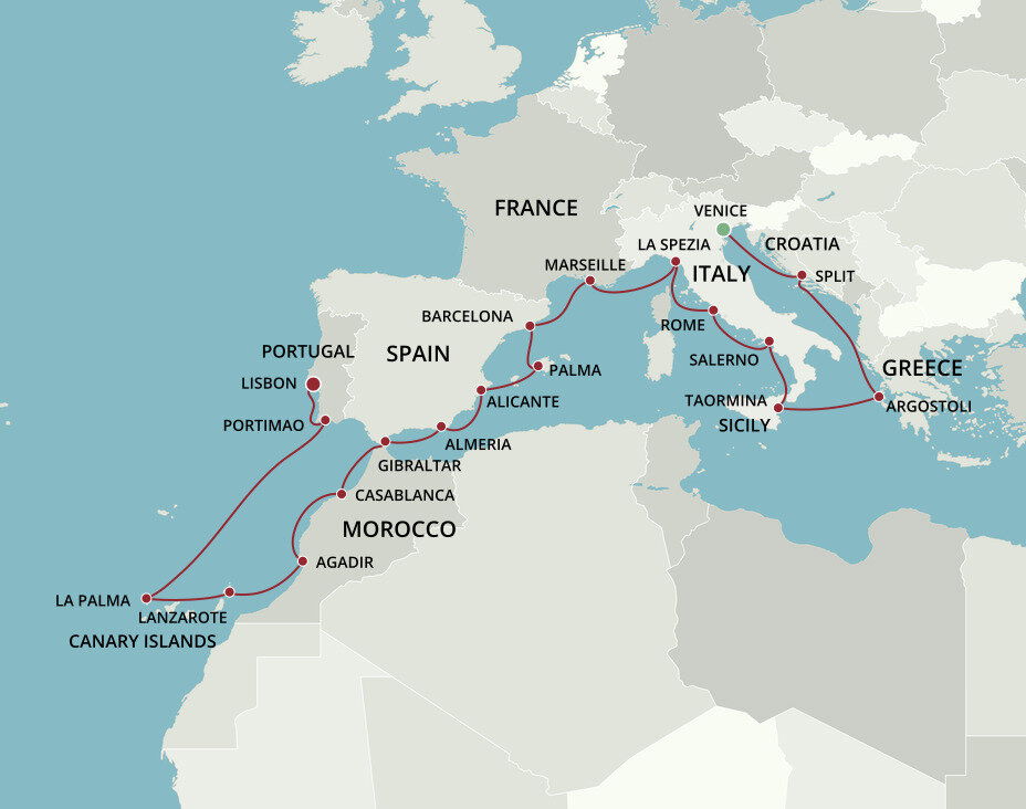 Situated at the foothills of the Sierra de Gador mountain range, the Spanish coastal city of Almeria is renowned for its wonderful climate. The sun shines for more than 320 days a year and the city has a coastline of preserved beaches with an interior characterised by its typical desert ecosystem. Ships will dock at the Muelle de Levante.
