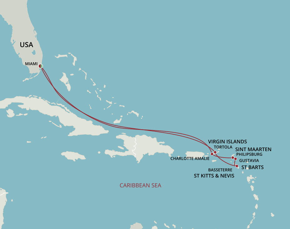 Cherry red roofs, yacht-sprinkled bays and a sophisticated French flavour all add to the gorgeous Caribbean allure of Gustavia. St. Barthelemy's capital rolls around a horseshoe-shaped harbour, where gleaming yachts hover and fancy boutiques, bars and restaurants fizz with life. Ships will anchor offshore and tenders will be provided to the shore.