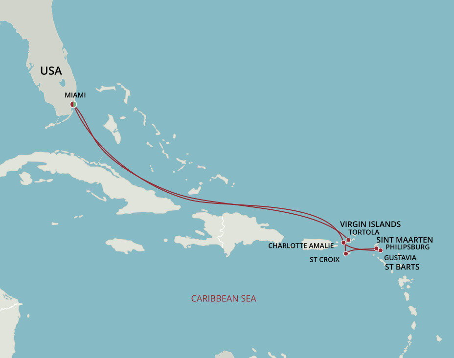 Cherry red roofs, yacht-sprinkled bays and a sophisticated French flavour all add to the gorgeous Caribbean allure of Gustavia. St. Barthelemy's capital rolls around a horseshoe-shaped harbour, where gleaming yachts hover and fancy boutiques, bars and restaurants fizz with life. Ships will anchor offshore and tenders will be provided to the shore.
