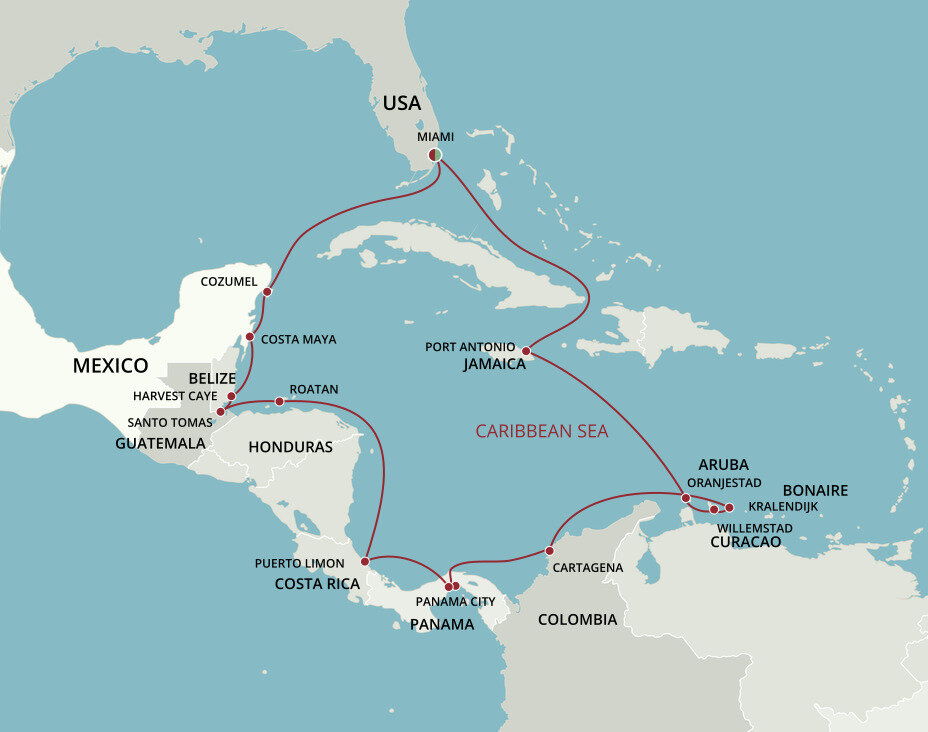 Featuring an enchanting range of environments such as tropical rainforests, marshes and coral reefs, Harvest Caye offers both relaxation and adventure amid lush landscapes. This pristine mangrove-covered 75-acre private island is a gem in the crown of Belize’s natural resources. Ships will dock at this port.