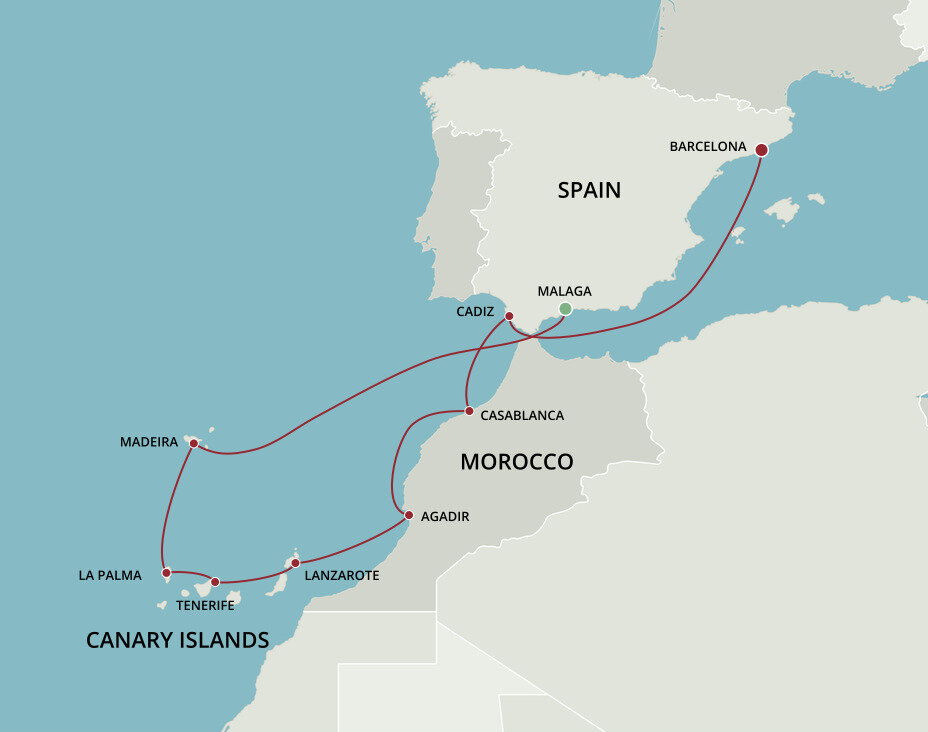 Málaga is the lively capital of the Costa del Sol, famed for its beaches and mild climate. It is a city of narrow streets, whitewashed houses, churches and sunny plazas. Málaga also serves as a popular starting point for excursions to splendid Granada and the famed Alhambra. Ships will dock at the Málaga cruise terminal.