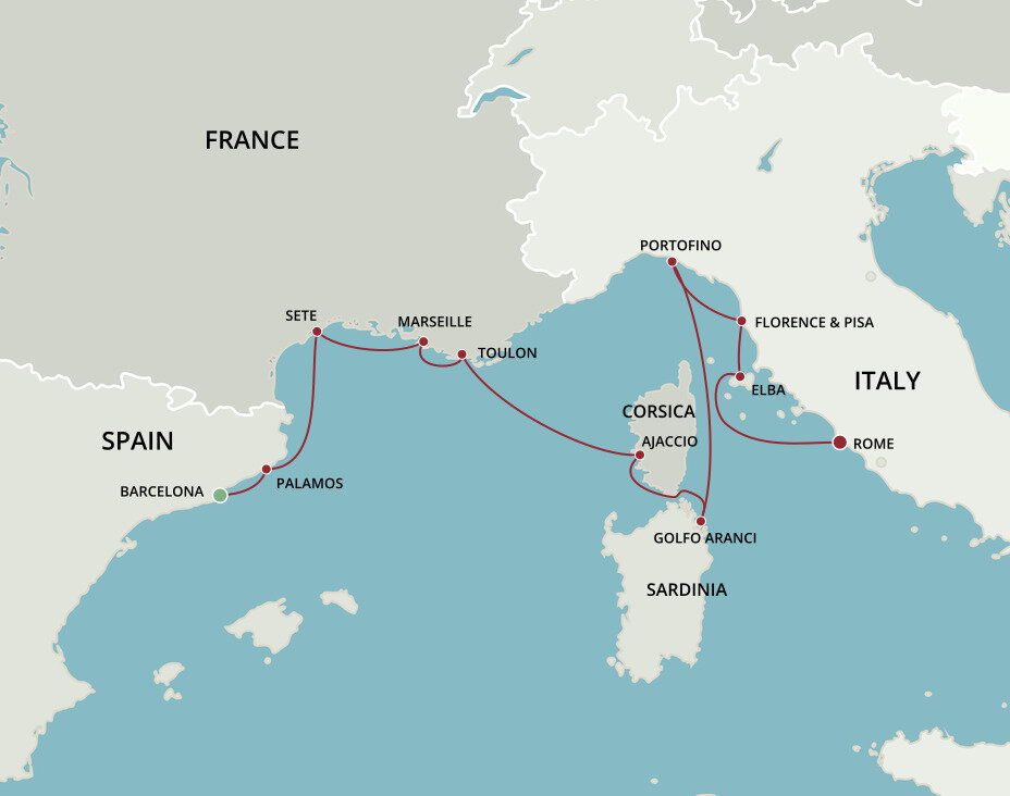 Located on the west coast of Corsica, Ajaccio is surrounded by green-hued mountains, with shady palm fringed squares and pleasure boats bobbing in the bay. The city is best known as the birthplace of Napoleon Bonaparte and his legacy dominates the city in its statues and street names. Ships will dock at Gare Maritime d’Ajaccio.