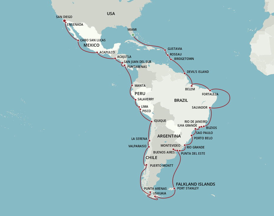 Located at the southernmost end of South America, Ushuaia is is often called a doorway to Antarctica. The town boasts incredible natural beauty through its national parks like the Tierra del Fuego National Park with cultural institutions like the Museo del Fin del Mundo, or the End of the World Museum. Ships will dock at this port.