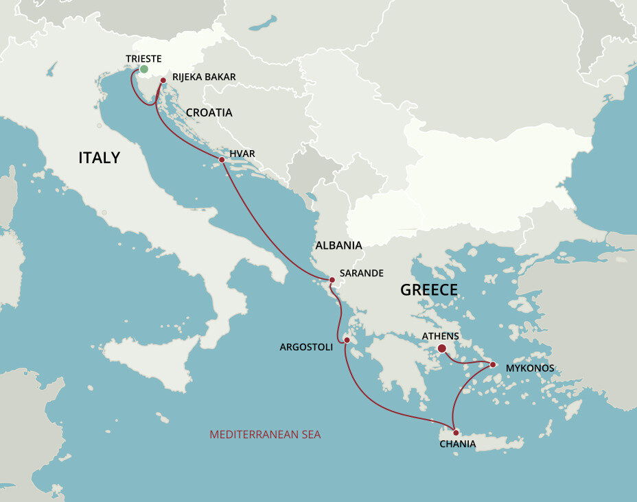 Overlooking the turquoise blue Ionian Sea, Albania’s most southerly harbour bathes in the glow of more than 300 sunny days each year. This seaside resort is celebrated for its lush natural habitat, dazzling displays of mosaics and artefacts, and historical sites such as the ruins of Onchesmos. Ships will anchor offshore and tender guests to the pier.