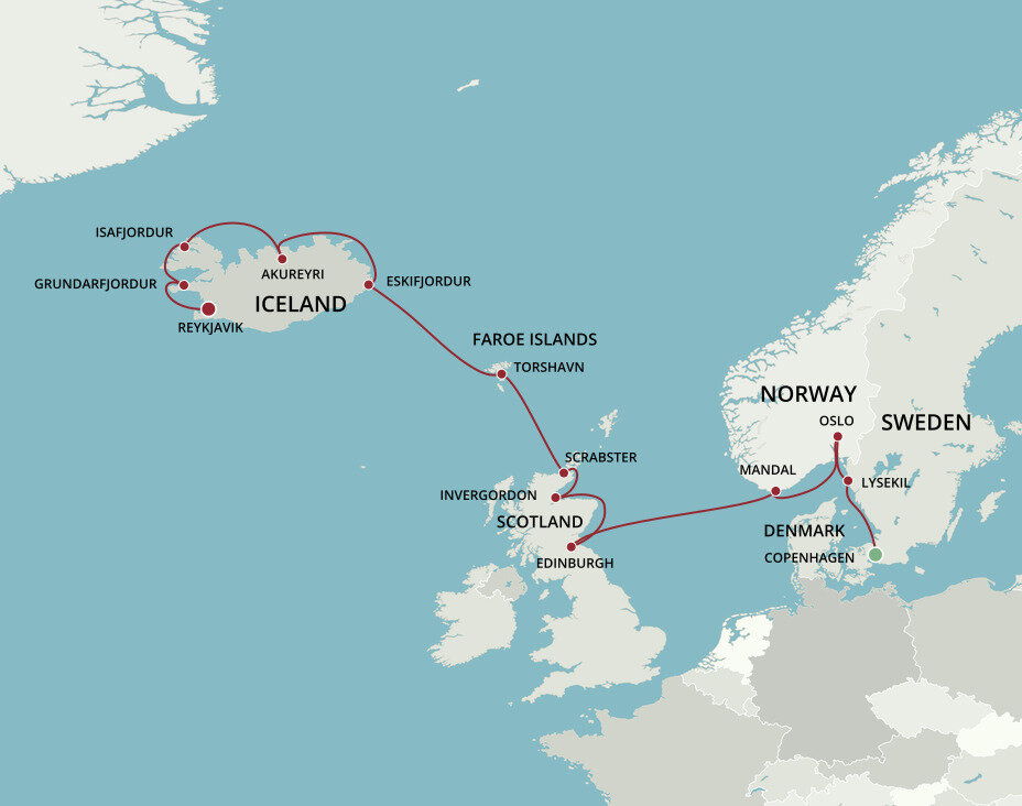Iceland’s Capital of the North is the gateway to a thrilling land of roaring waterfalls, soaring volcanoes and glorious wildlife. Situated at the head of Eyjafjordur, Iceland's longest fjord and with a backdrop of dramatic snow-covered mountains, Akureyri is Iceland's second largest city. Ships will dock at the pier.