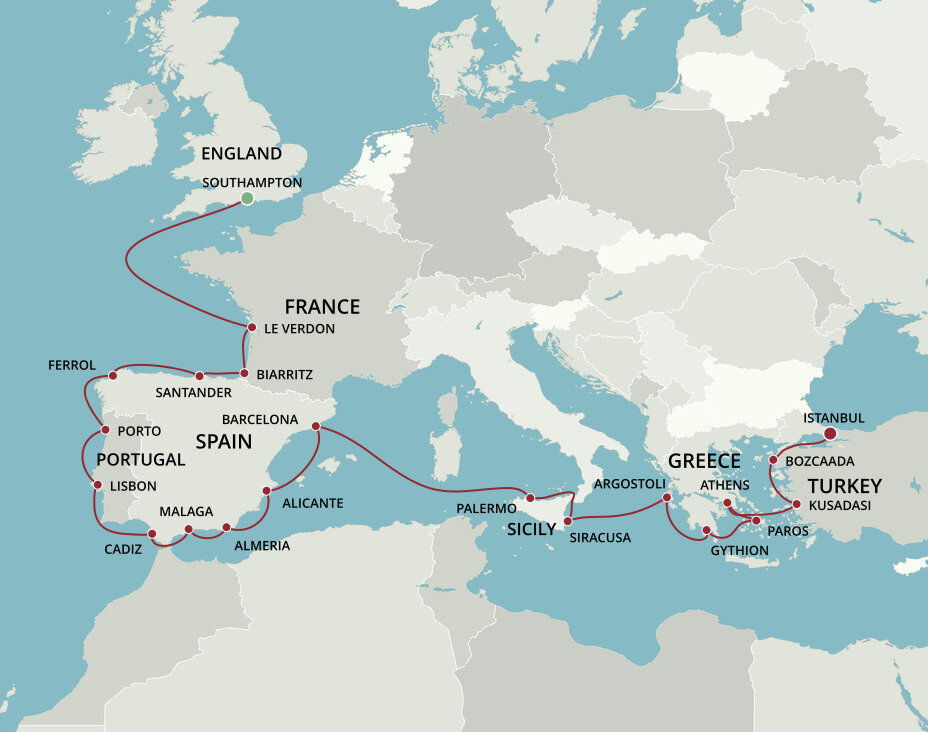 Once the seat of two massive empires, Istanbul has been shaped by its colourful history. From massive Byzantine churches, to towering Ottoman mosques, history can be found in each building no matter what part of the city you wander through. Ships will dock at the Galataport cruise ship terminal which is a 40 minute drive from the Istanbul Airport.