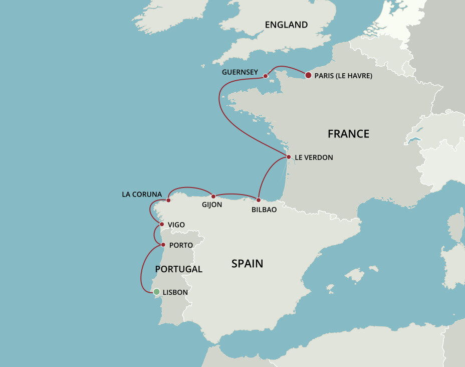 Surrounded by green mountains and lined by the beautiful blue water of the Bay of Biscay, Bilbao is magnificent mix of historic and spectacular modern architecture. Famed for its Guggenheim Museum, clad in glimmering titanium, this enormous structure is a work of art itself. Ships will dock in Getxo, which is a 20 minute drive from Bilbao.