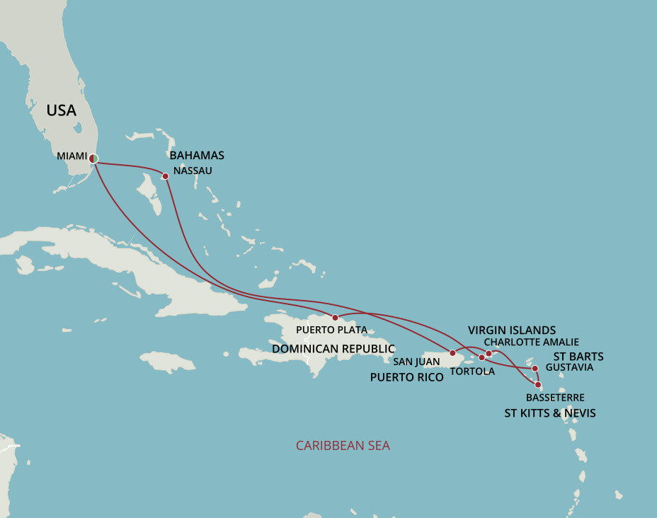 Cherry red roofs, yacht-sprinkled bays and a sophisticated French flavour all add to the gorgeous Caribbean allure of Gustavia. St. Barthelemy's capital rolls around a horseshoe-shaped harbour, where gleaming yachts hover and fancy boutiques, bars and restaurants fizz with life. Ships will anchor offshore and tenders will be provided to the shore.