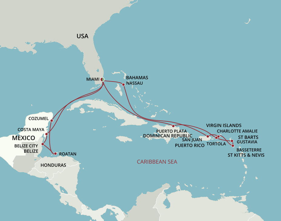 This multicultural city where the sun rules supreme is more than just a cruise port. Visitors from all over the world enjoy Miami’s famous Art Deco buildings, family-friendly zoos and romantic palm tree-lined streets filled with fantastic restaurants. Don’t forget about the white sandy beaches and year-round warm weather, perfect for relaxing before or after your Caribbean cruise from Miami.