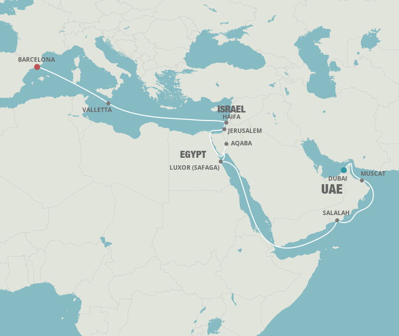 Enjoy the breathtaking illusion of sailing through oceans of desert sand as you cruise the Suez Canal, the engineering marvel that connects the Mediterranean and Red Seas.