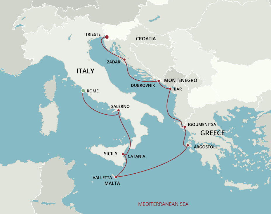 Your ship will dock at the Trieste Cruise Terminal, located right in the heart of the city. This makes it easy to explore Trieste and visit key attractions like Piazza Unità d'Italia, the Roman Theatre, and Miramare Castle which are easily accessible by foot or a short bus ride.