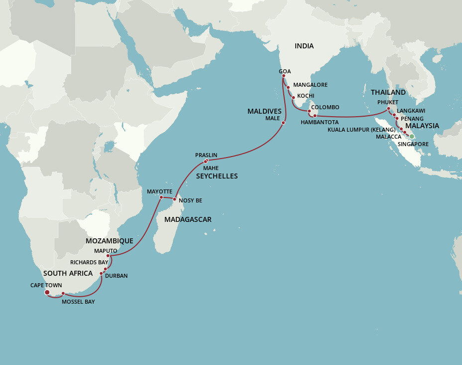 Malaysia’s dynamic capital is a melting pot of skyscrapers, Islamic architecture and British Colonial buildings offering a futuristic cityscape with an enduring nod to yesteryear. Home to some of Asia’s most opulent shopping malls, Kuala Lumpur’s skyline is dominated by the famous Petronas and Menara Kuala Lumpur Towers. Ships will dock in Port Klang.