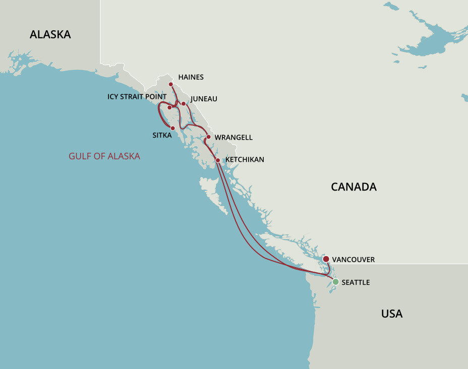 Massive tidewater glaciers, forest-clad islands, ice-carved fjords, and charming coastal towns such as Juneau, Ketchikan, Haines and Skagway await you here. On small ship cruises, you’ll visit even more intimate ports of call. Glacier Bay National Park and Hubbard Glacier are highlights.