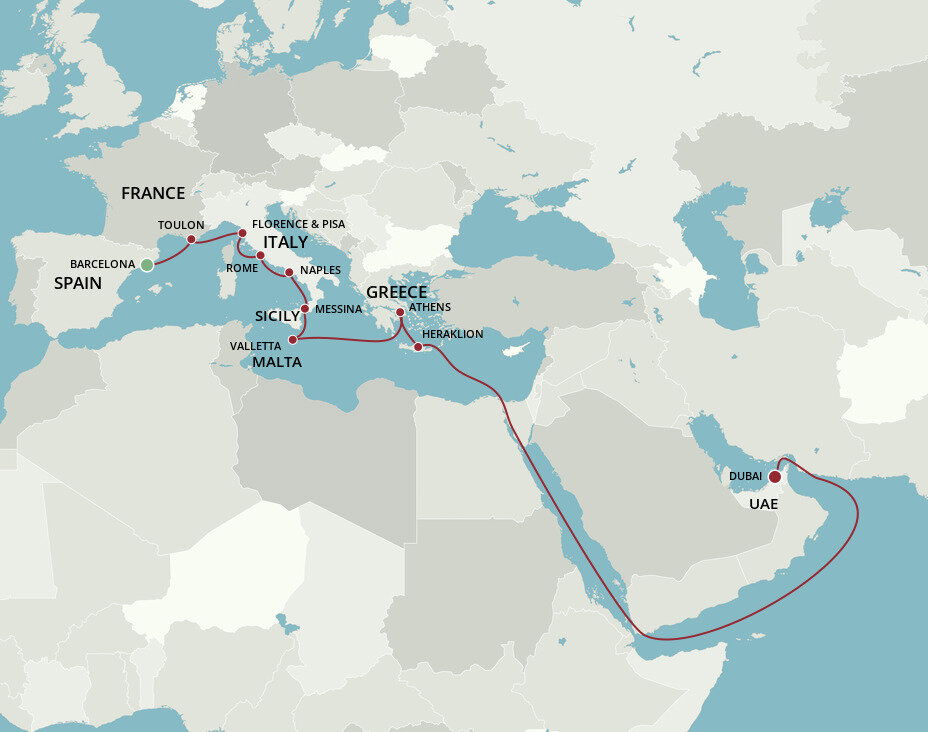 The entire city of Valletta, the capital of Malta, is a UNESCO World Heritage Site. Cited as one of the most concentrated historic areas in the world, it’s a cultural hub for Baroque art, museums, and historic sites. Ships will dock at the cruise port.