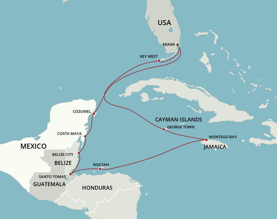 The southernmost point of the United States, Key West is known for its glorious sunshine, wild beaches, historical charm and carefree attitude. It boasts year-round tropical weather, and some of the clearest snorkelling and most preserved coral reef structures in the world. Ships will dock at this port.
