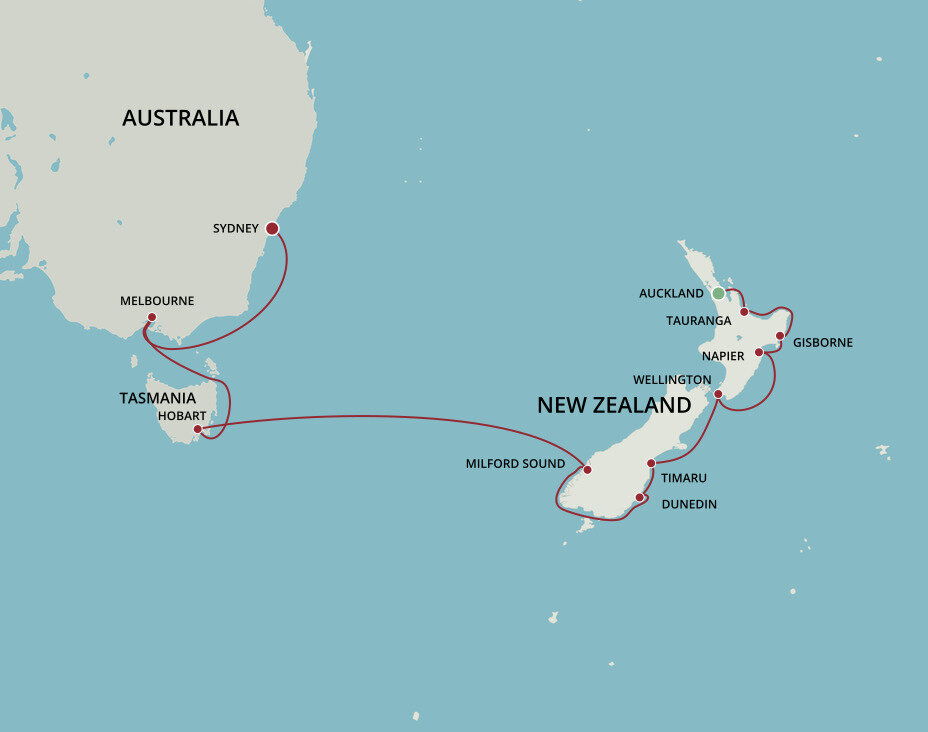 In downtown Auckland you can enjoy world-class dining, shopping, and sights. If you've a mind to explore, visit the island volcano of Rangitoto, or head to Waiheke, known as 'the island of wine' each are within a 40 minute ferry ride of your port.