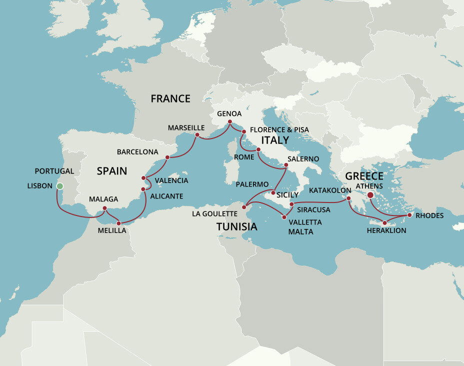 Málaga is the lively capital of the Costa del Sol, famed for its beaches and mild climate. It is a city of narrow streets, whitewashed houses, churches and sunny plazas. Málaga also serves as a popular starting point for excursions to splendid Granada and the famed Alhambra. Ships will dock at the Málaga cruise terminal.
