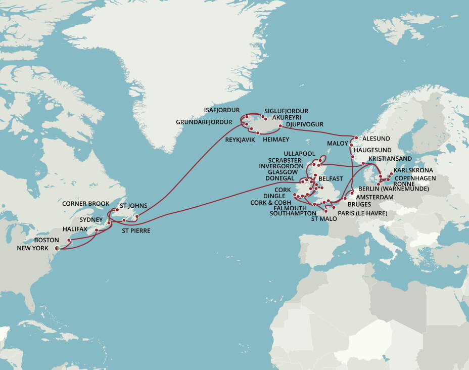 Located in the chilly and wild North Atlantic, it is common to see whales and seals in the surrounding waters. Puffins are also a common sight in summer, as the islands are considered as the largest Atlantic puffin colony in the world. Ships will dock in the main harbour.