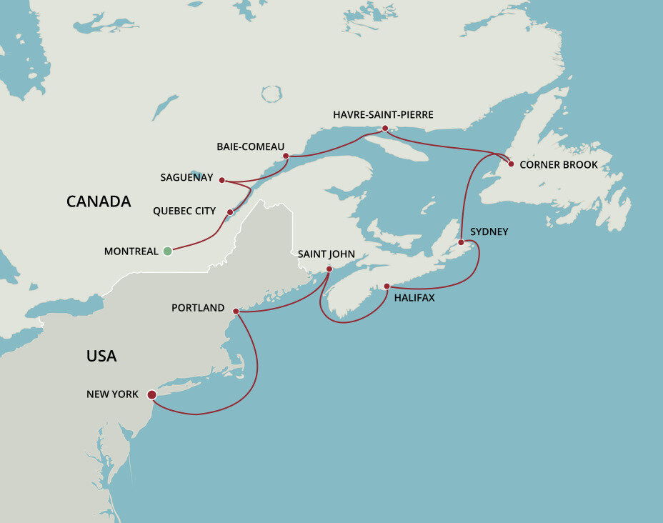Corner Brook, a picturesque port city in Newfoundland, Canada, is surrounded by breathtaking landscapes including the Corner Brook Gorge and Three Bear Mountain. Ships will dock at the Corner Brook Port, which is a 10-minute drive to town. Bask in the community's warmth and authenticity during this port of call.