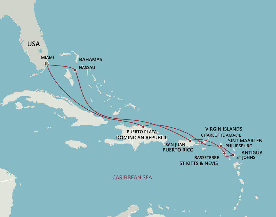 This multicultural city where the sun rules supreme is more than just a cruise port. Visitors from all over the world enjoy Miami’s famous Art Deco buildings, family-friendly zoos and romantic palm tree-lined streets filled with fantastic restaurants. Don’t forget about the white sandy beaches and year-round warm weather, perfect for relaxing before or after your Caribbean cruise from Miami.