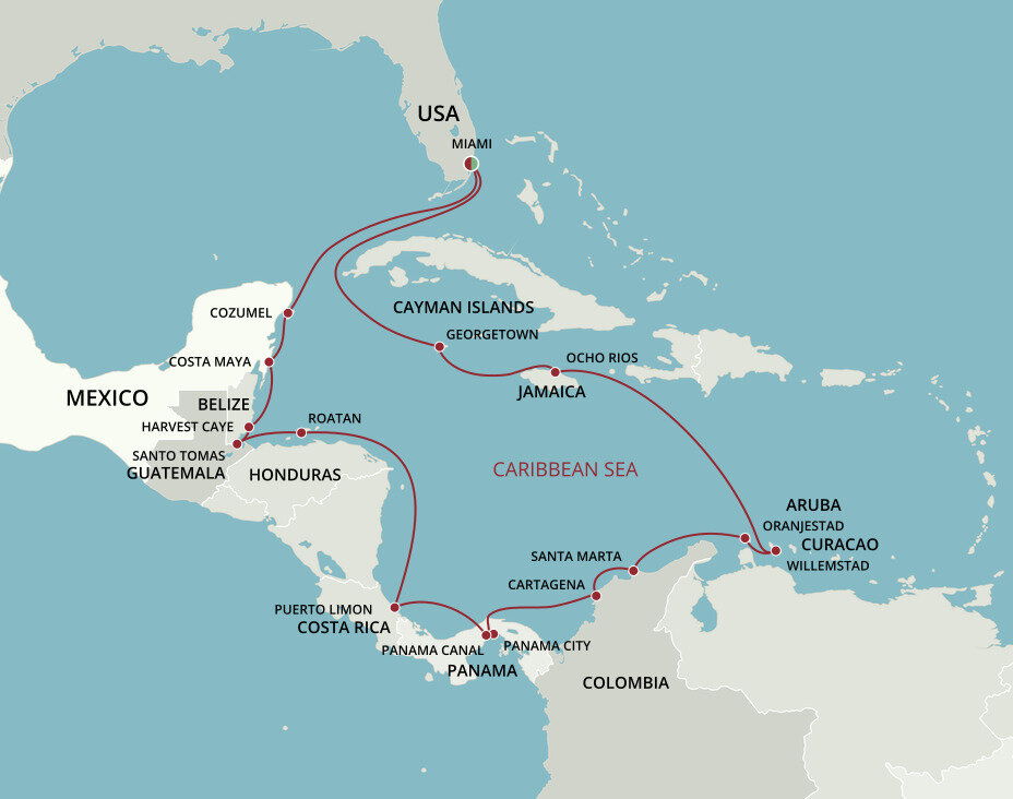 Featuring an enchanting range of environments such as tropical rainforests, marshes and coral reefs, Harvest Caye offers both relaxation and adventure amid lush landscapes. This pristine mangrove-covered 75-acre private island is a gem in the crown of Belize’s natural resources. Ships will dock at this port.