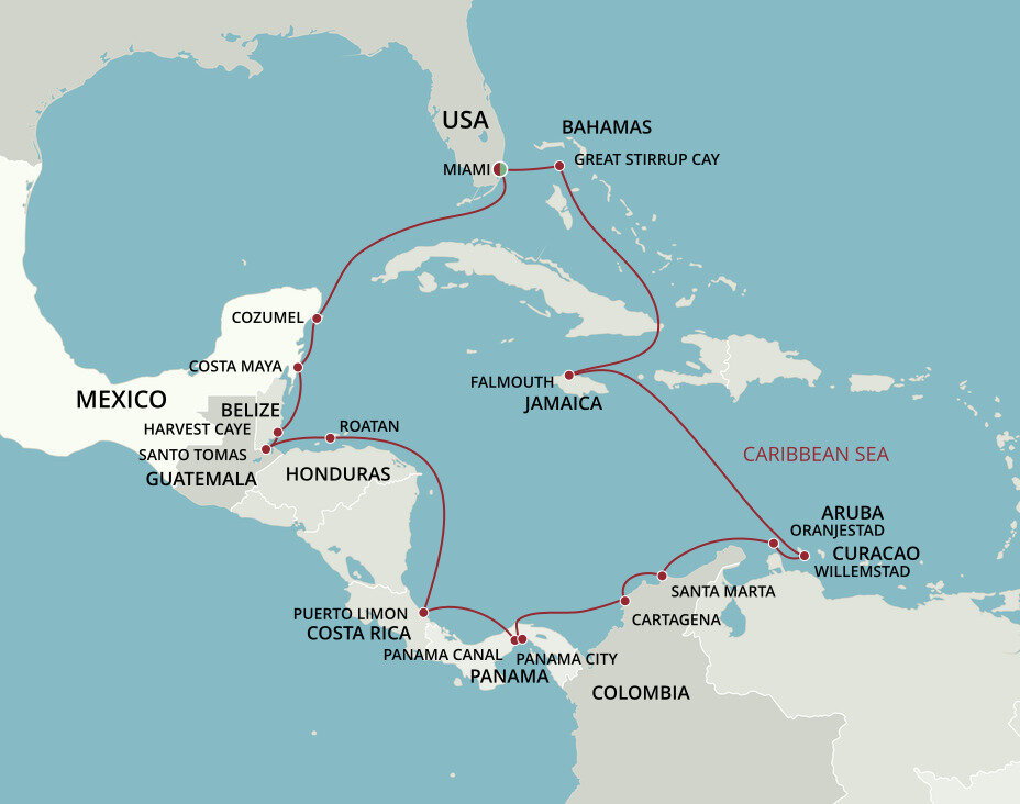 Featuring an enchanting range of environments such as tropical rainforests, marshes and coral reefs, Harvest Caye offers both relaxation and adventure amid lush landscapes. This pristine mangrove-covered 75-acre private island is a gem in the crown of Belize’s natural resources. Ships will dock at this port.