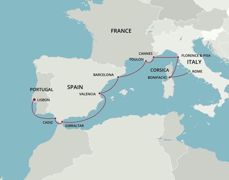 Nestled between majestic cliffs, and surrounded by the turquoise waters of the Mediterranean, lies the unique hilltop fortress town of Bonifacio. Here the citadel seems to have grown right out of the limestone cliffs, and medieval houses perch precariously on the edge. Ships will anchor offshore and tenders will be provided to the cruise terminal.