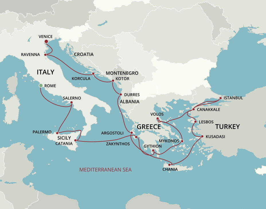 Once the seat of two massive empires, Istanbul has been shaped by its colourful history. From massive Byzantine churches, to towering Ottoman mosques, history can be found in each building no matter what part of the city you wander through. Ships will dock at the Galataport cruise ship terminal which is a 40 minute drive from the Istanbul Airport.