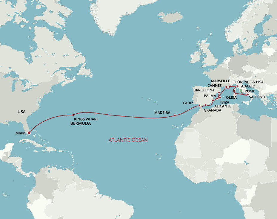 Located on the west coast of Corsica, Ajaccio is surrounded by green-hued mountains, with shady palm fringed squares and pleasure boats bobbing in the bay. The city is best known as the birthplace of Napoleon Bonaparte and his legacy dominates the city in its statues and street names. Ships will dock at Gare Maritime d’Ajaccio.