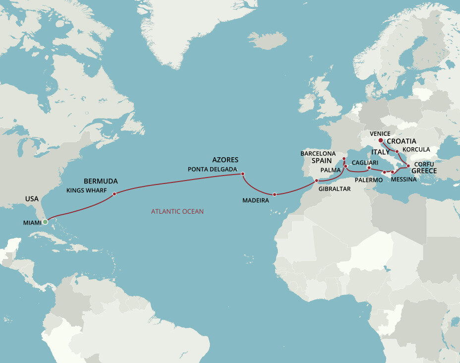 The lush and verdant island of Corfu lies in the Ionian Sea, midway between Greece and Italy. It is an island of sparkling beaches, mountains splashed with wildflowers, and historical, perched fortresses. Ships will dock at the town of Corfu.