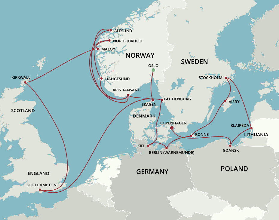 Set on the shores of a sparkling fjord, cosmopolitan Kristiansand is the largest city in Southern Norway. It has a cultural and tranquil atmosphere, a blend of contemporary and traditional architecture, and a natural beauty woven throughout and beyond the city. Ships will dock at the cruise terminal.