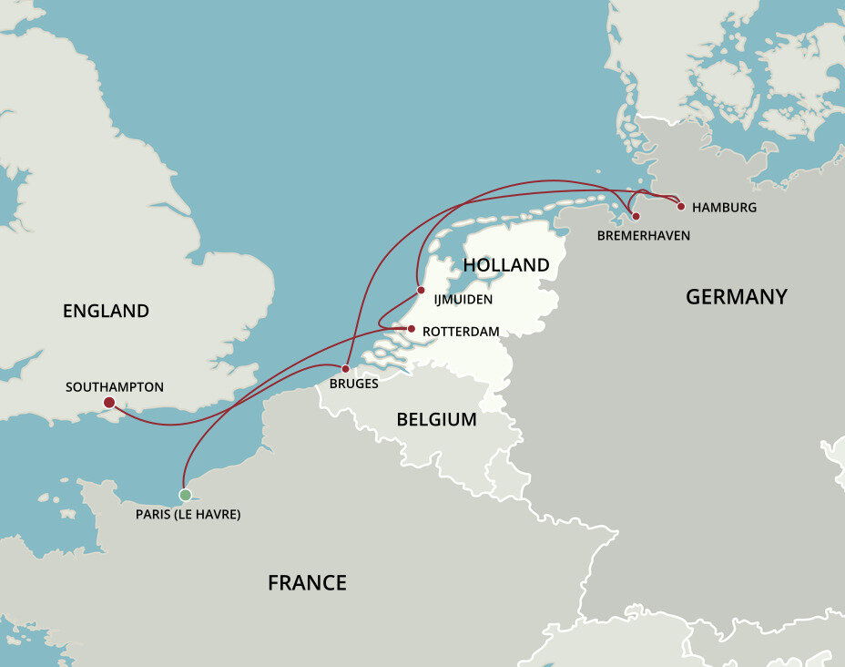 Your cruise ship will be docked at Le Havre Cruise Terminal, which is close to the city center. A local shuttle service runs to and from the port into the city centre of Le Havre for a small fee. If you're staying in Paris, it's 200 km (124 miles) southeast of Le Havre - about 2.5–3 hours by train, coach, or private transfer.