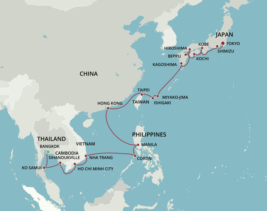 In Bangkok, the old meets the new: Skyscrapers contrast ornate Thai temples, high-end cocktail bars lie around the corner from bustling stalls of street-food vendors, and tuk tuk rickshaws pedal beside cars on the busy streets. Ships will dock in Laem Chabang about a 2 hour drive from Bangkok.