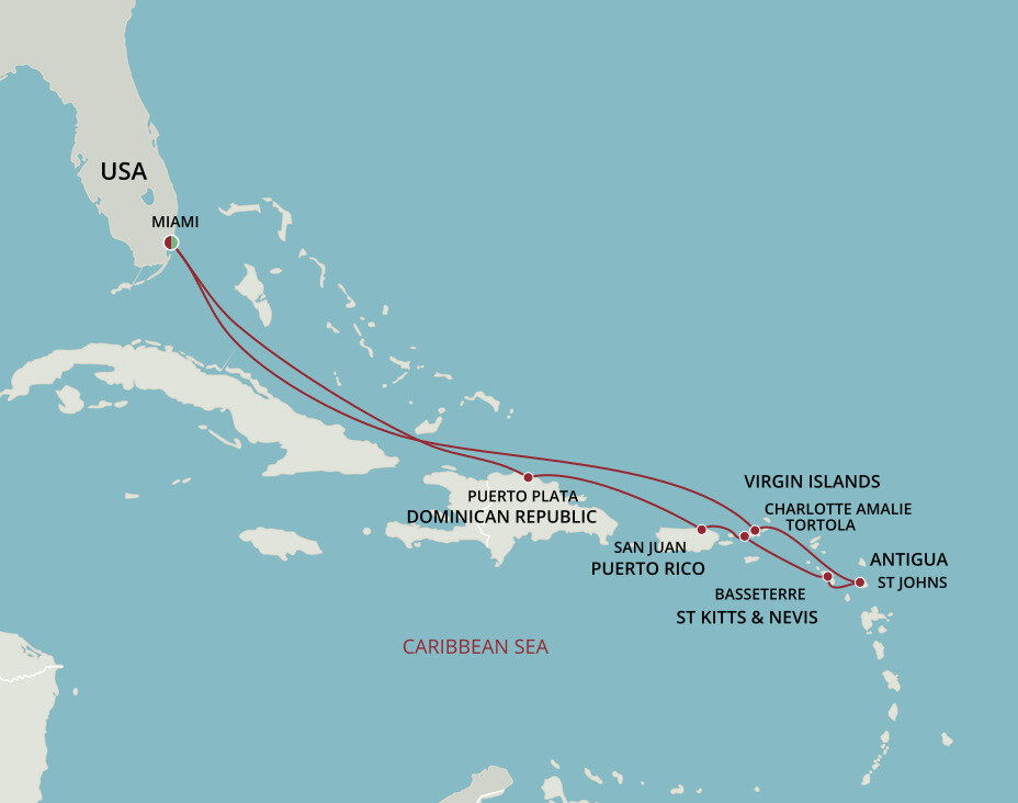 The largest of the British Virgin Islands, Tortola is known for its shimmering beaches, oleander and hibiscus-covered mountainsides, and quaint towns tucked along coves. This early home to Blackbeard and Captain Kidd maintains its salty pirate legacy and rum-making traditions today. Ships will dock or anchor in Road Town Harbour.