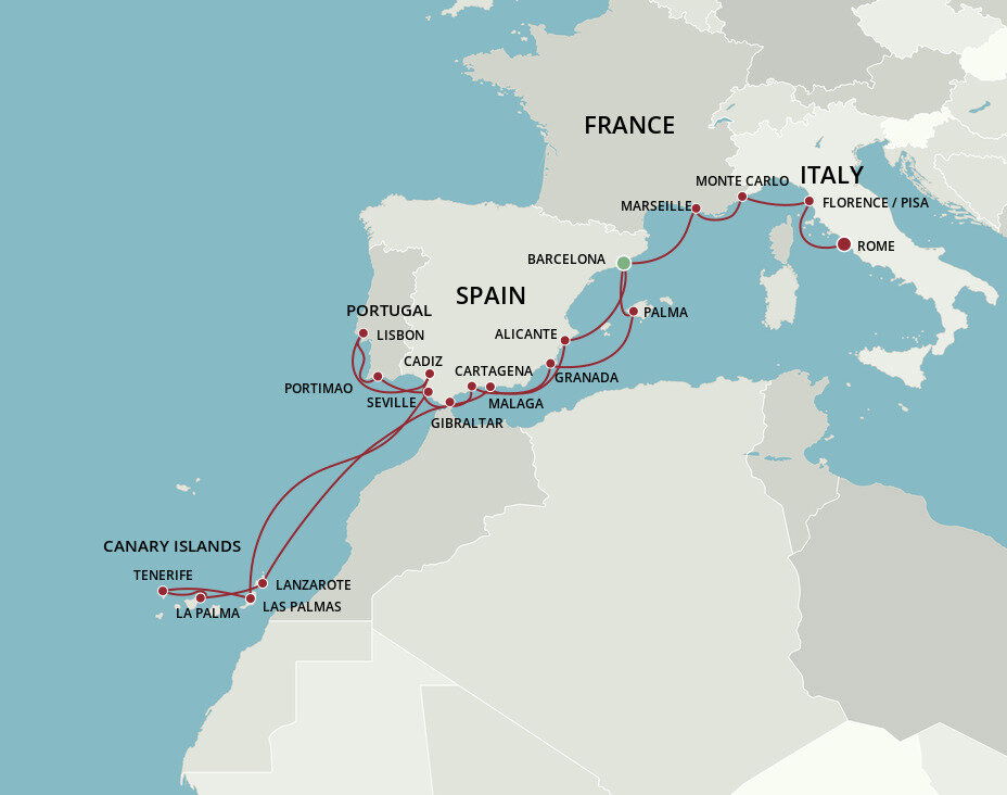 Málaga is the lively capital of the Costa del Sol, famed for its beaches and mild climate. It is a city of narrow streets, whitewashed houses, churches and sunny plazas. Málaga also serves as a popular starting point for excursions to splendid Granada and the famed Alhambra. Ships will dock at the Málaga cruise terminal.