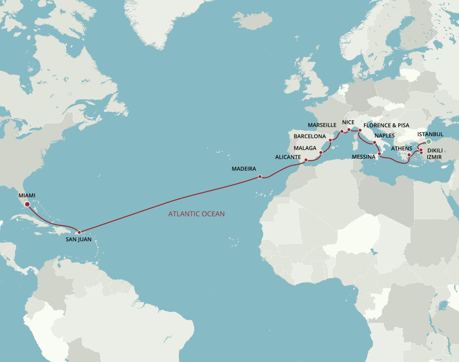 Once the seat of two massive empires, Istanbul has been shaped by its colourful history. From massive Byzantine churches, to towering Ottoman mosques, history can be found in each building no matter what part of the city you wander through. Ships will dock at the Galataport cruise ship terminal which is a 40 minute drive from the Istanbul Airport.