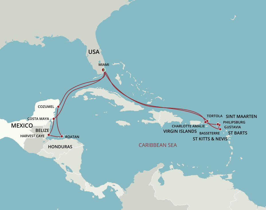 Featuring an enchanting range of environments such as tropical rainforests, marshes and coral reefs, Harvest Caye offers both relaxation and adventure amid lush landscapes. This pristine mangrove-covered 75-acre private island is a gem in the crown of Belize’s natural resources. Ships will dock at this port.