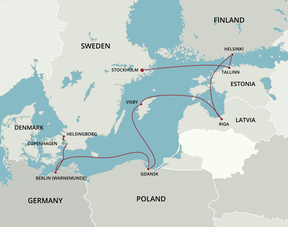 A small town on the island of Gotland, Visby was a popular trading spot during the Viking Age. Today, this pretty medieval city is Sweden's sunniest vacation destination and a UNESCO World Heritage site. Ships will dock at the Visby Cruise Quay.