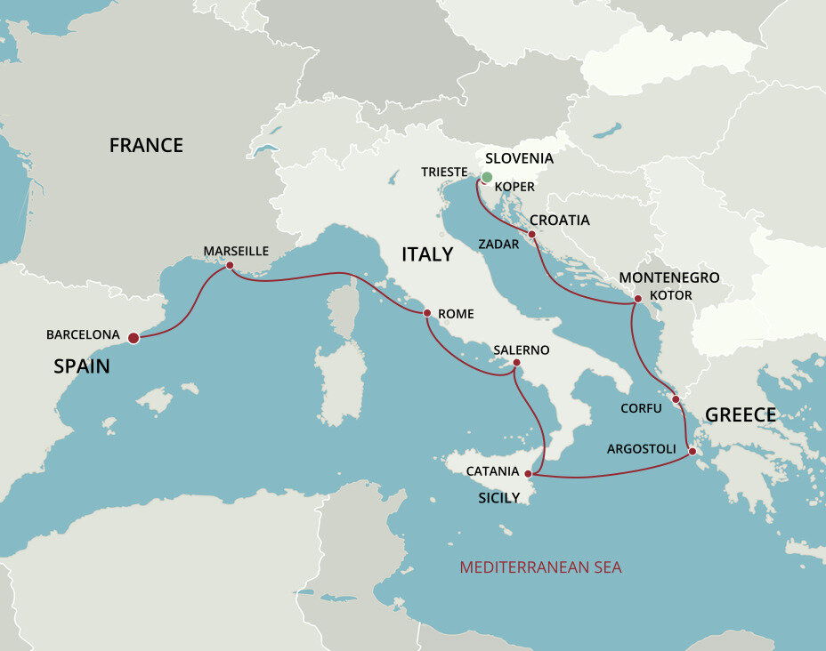 Backed by hills of olive groves and vineyards, the historic port of Koper boasts a colourful history dating back to Ancient Greece and Rome that springs to life in its Old Town. Koper is also your gateway to Ljubljana, the nation's capital, a graceful city of Baroque and Art Nouveau architecture and bridges. Ships will dock at the Potniški terminal.