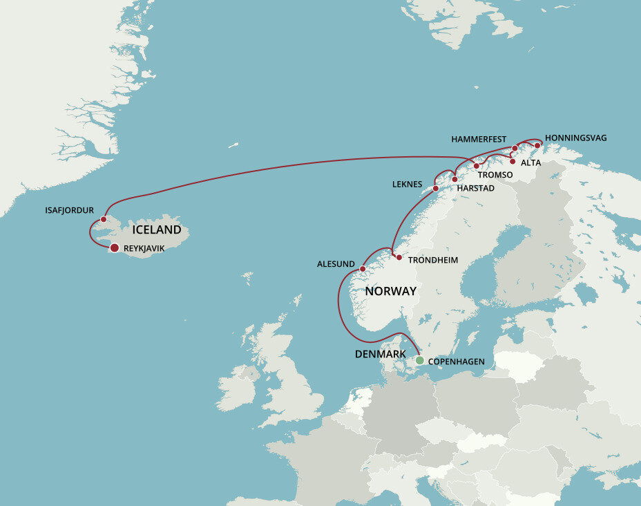 Tucked into the Altafjord, Alta enjoys a warmer, drier climate than other ports in Northern Norway. Rugged landscapes roll down to meet the calm waters of its sheltered harbour, and local Sami culture thrives in one of the world’s most northerly cities. Ships will dock at this port.
