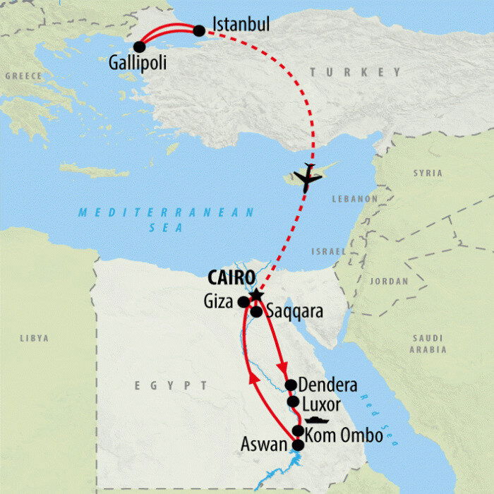 Our ANZAC tour of Turkey comes to an end today and our Egypt adventure begins. Please Note: The flight from Istanbul to Cairo isn't included in the cost of the tour and must be booked independently. Turkish Airlines and Egyptair offer flights between Istanbul and Cairo, check the THY or Egyptair websites for more details. Please provide us with your incoming flight details to Egypt and we will be there to meet you at Cairo airport and transfer you to our hotel.