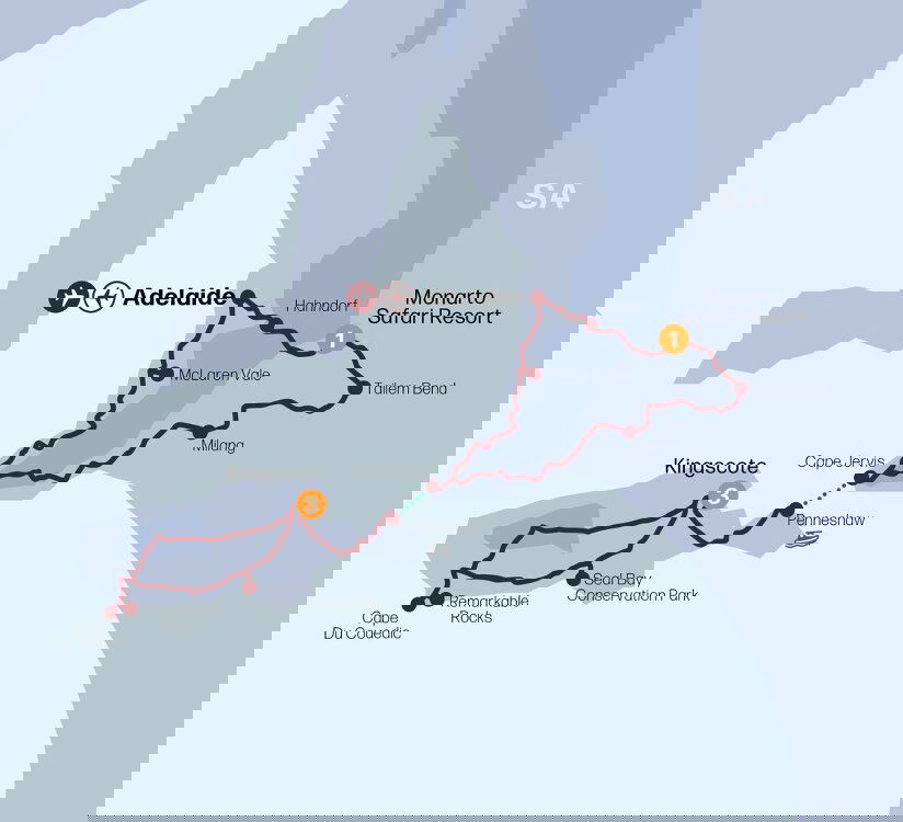 Enjoy some free time this morning and explore the highlights of Kangaroo Island with a variety of local sightseeing activities and some interesting tastings ahead. Discover the fascinating process of eucalyptus oil production, past and present, with a visit to the Emu Ridge Eucalyptus Distillery. Indulge in the unique flavours of the region at Kangaroo Island Spirits and sample delicious local honey at the Island Beehive for a true taste of the island's charm. Stay: Ozone Hotel (B/L/D)